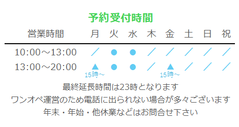 ※レッスン中や近場にいない場合がございますので長めにコールしていただくか複数回おかけいただくと助かります
